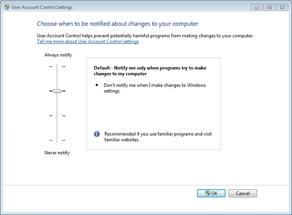 3. En la ventana de diálogo del Control de cuentas de usuario aparecerán los ajustes actuales.
