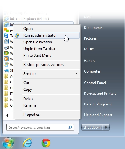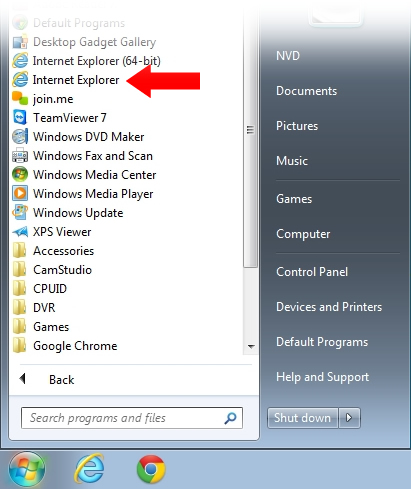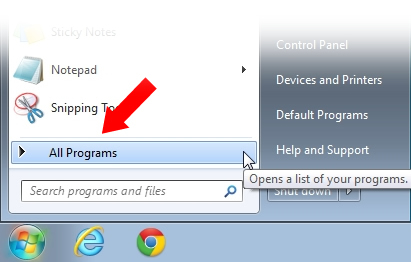 5. Una vez que haya reiniciado la computadora, no ejecute Internet Explorer desde un acceso directo de inicio rápido en el menú de Inicio. Haga clic en Todos los programas.